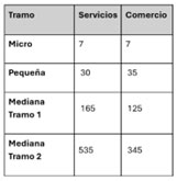 4.2 Asimismo, deberán cumplir con los parámetros de cantidad de empleados que se enuncian a continuación: